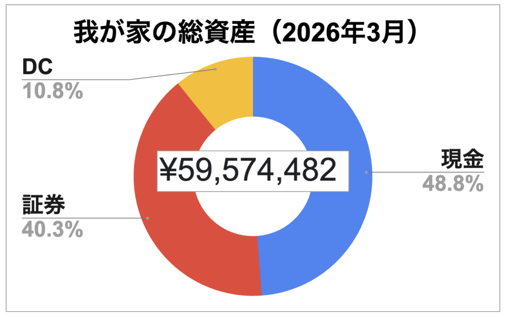 前段はここまでとして、今回は我が家の総資産を公開していきます。3月末時点の総資産となりますので、市場が下落している時の状況となります。その点についてはご了承ください。